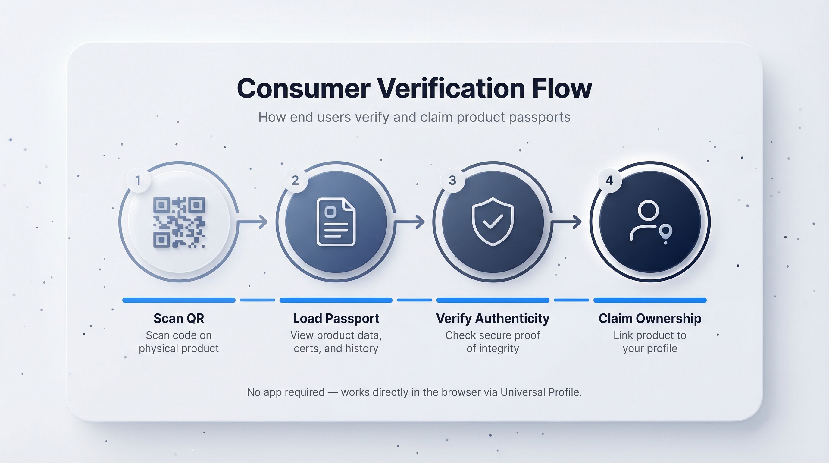 Anyone can verify a product's claims without creating an account or installing software: consumers, retailers, customs inspectors, journalists. This process — scanning, verifying, and optionally claiming — is called Scan-to-Sign. This guide explains what happens when someone scans a passport and what "verified" actually means.